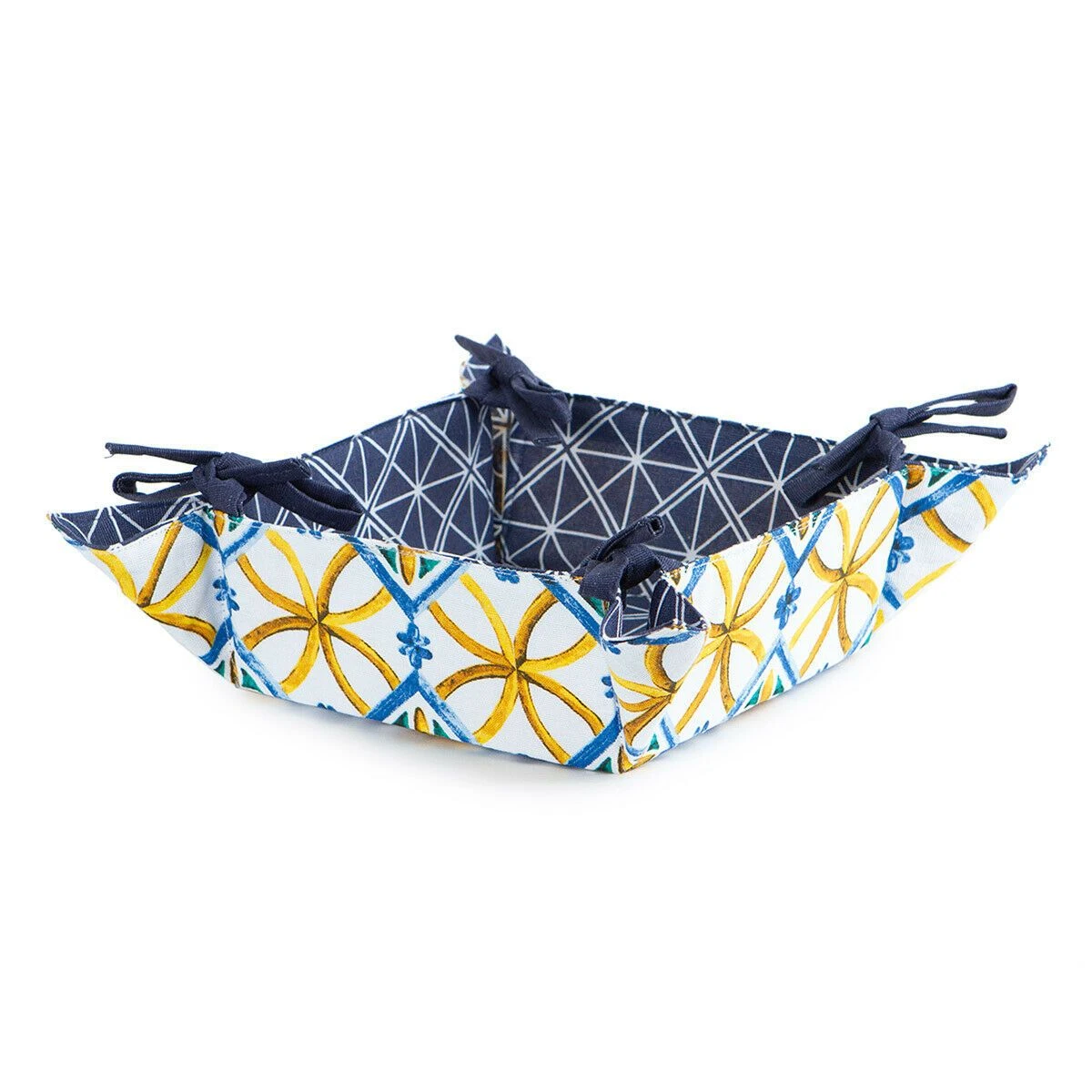 | Dettagli | La confezione contiene un cestino portapane Base quadrata Motivo ispirato alle maioliche Interno con motivo geometrico Pieghevole con laccetti ad ogni angolo |