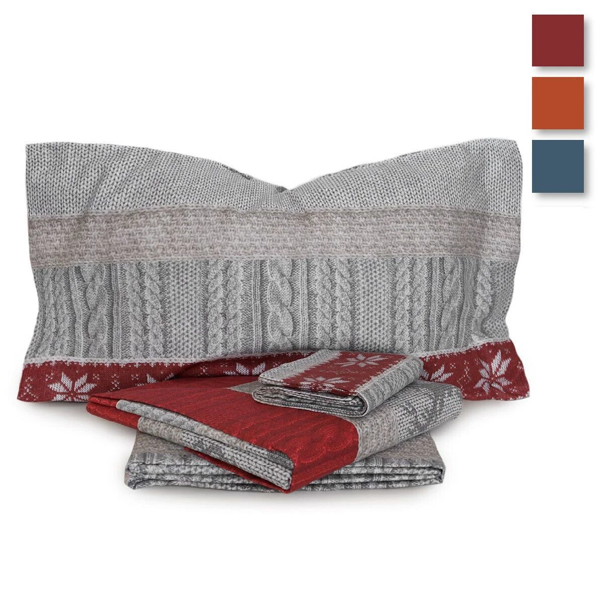 | Dettagli | La confezione contiene un completo lenzuola invernale in flanella composto da: 1 lenzuolo sopra 1 lenzuolo sotto con angoli La dimensione per letto singolo ed una piazza e mezza contiene 1 federa, quella per letto matrimoniale 2 federe Federe a sacchetto a due volants Stampa con motivo tricot Morbida e calda flanella di puro cotone naturale Trattamento antipilling che evita la formazione di pelucchi Made in Italy |