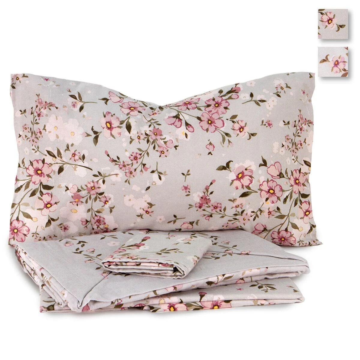 I fiori di pesco sono i protagonisti indiscussi del completo lenzuola Miranda. Fusione d’incanto, bellezza e forza, aggiungeranno alla vostra camera da letto un tocco romantico e poetico. Il tessuto in flanella di puro cotone è piacevole al tatto e, grazie alla sua proprietà isolante, favorisce un’elevata qualità del sonno,