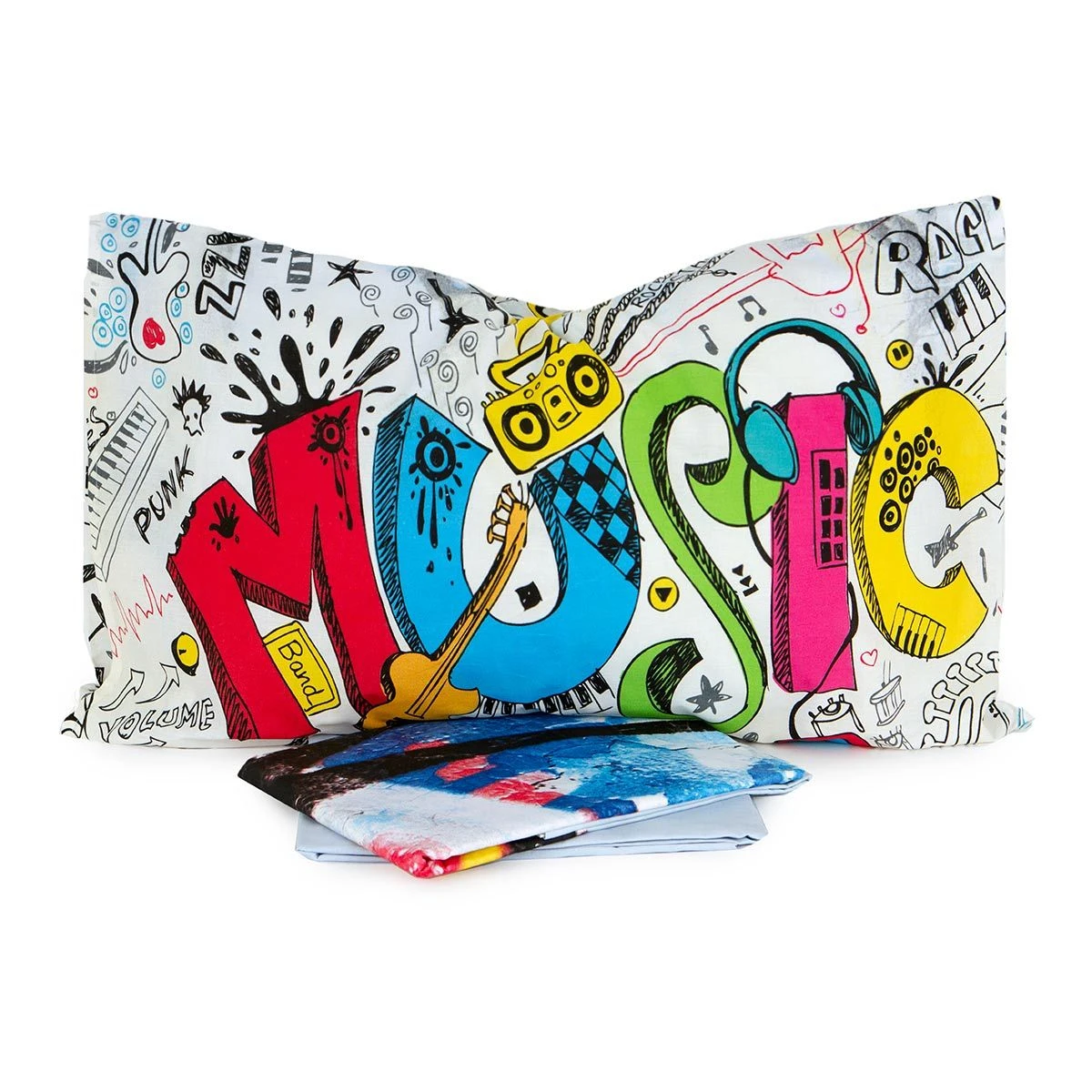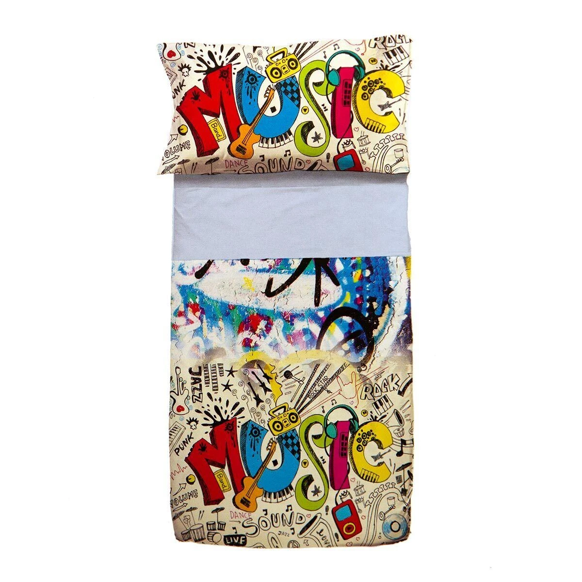 Che mondo sarebbe senza musica? Novia lo sa bene, ecco perché con il completo lenzuola Stereo vuole dare un tocco artistico e vivace alla cameretta di tuo figlio. Realizzato in puro cotone, possibilità di uso anche come copriletto leggero.