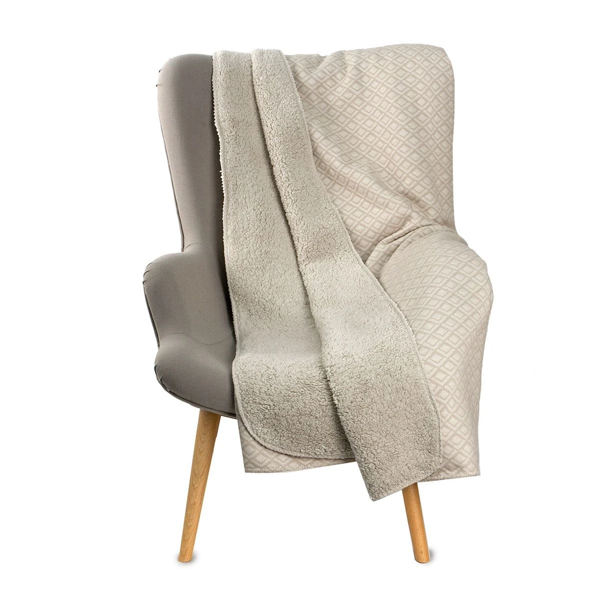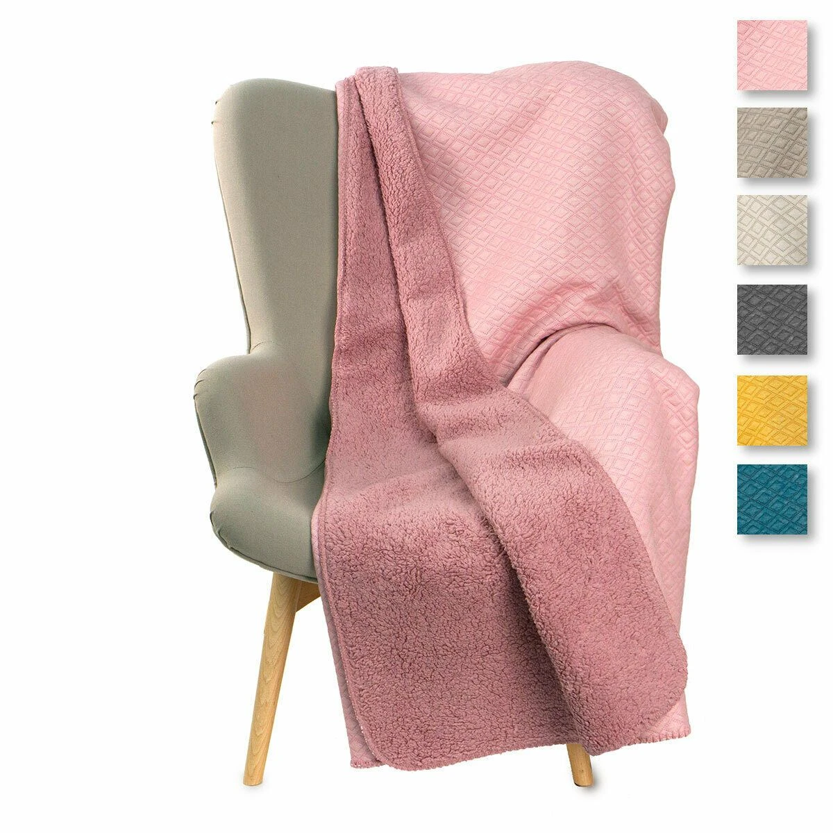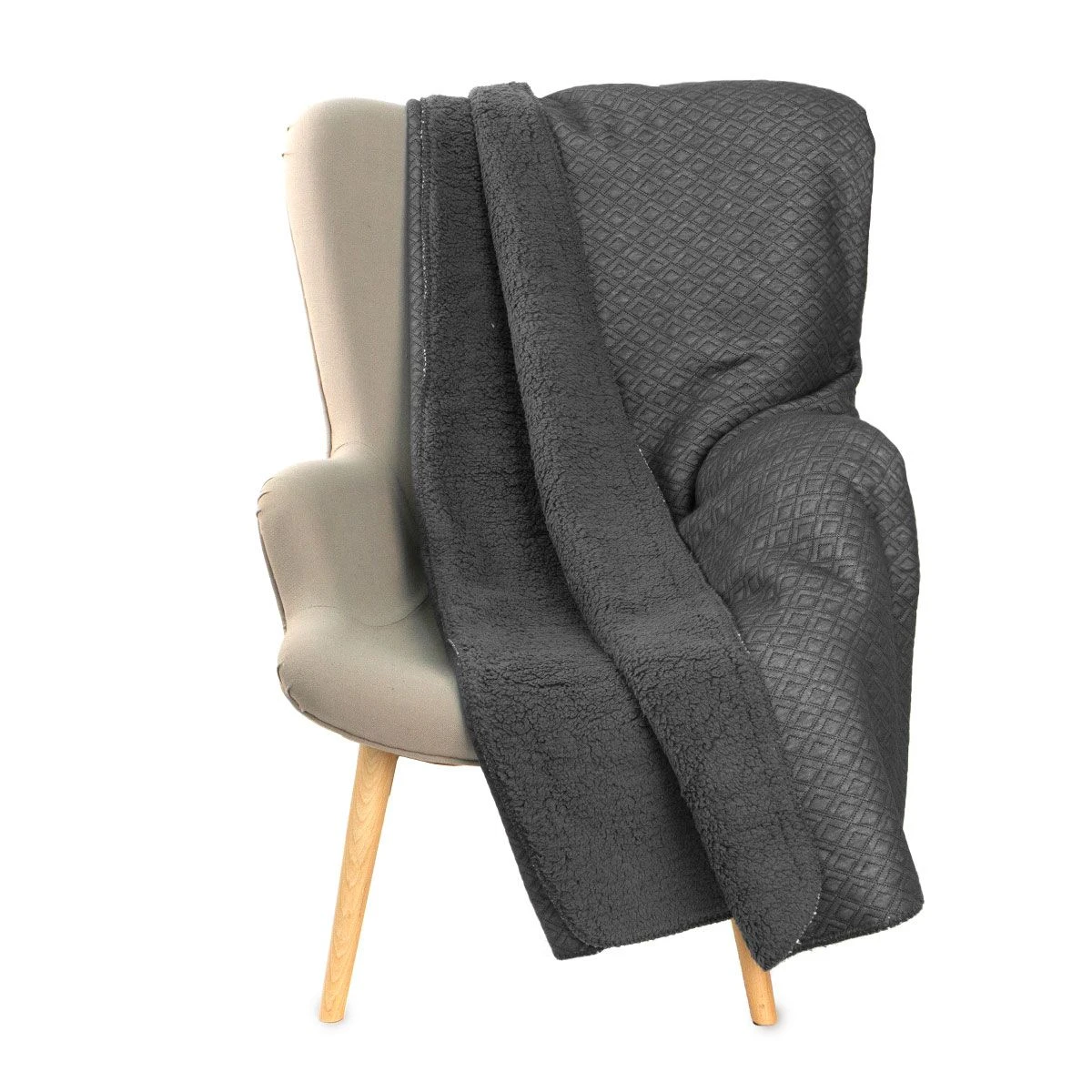 | Dettagli | La confezione contiene un plaid in piquet e sherpa Tessuto superiore in piquet di poliestere da 220 gr/mq Tessuto inferiore in sherpa super soft da 280 gr/mq Peso: 500 gr/mq Tinta unita, lavorazione jaquard con motivo romboidale Disegnato e progettato in Italia |