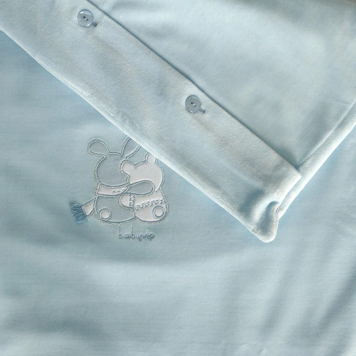 Due piccoli coniglietti sono i protagonisti del ricamo riportato sulla copertina di Babyvip. Realizzata in ciniglia e comodamente sfoderabile, è ideale per permettere ai piccoli di casa di restare al caldo e dormire sonni tranquilli.