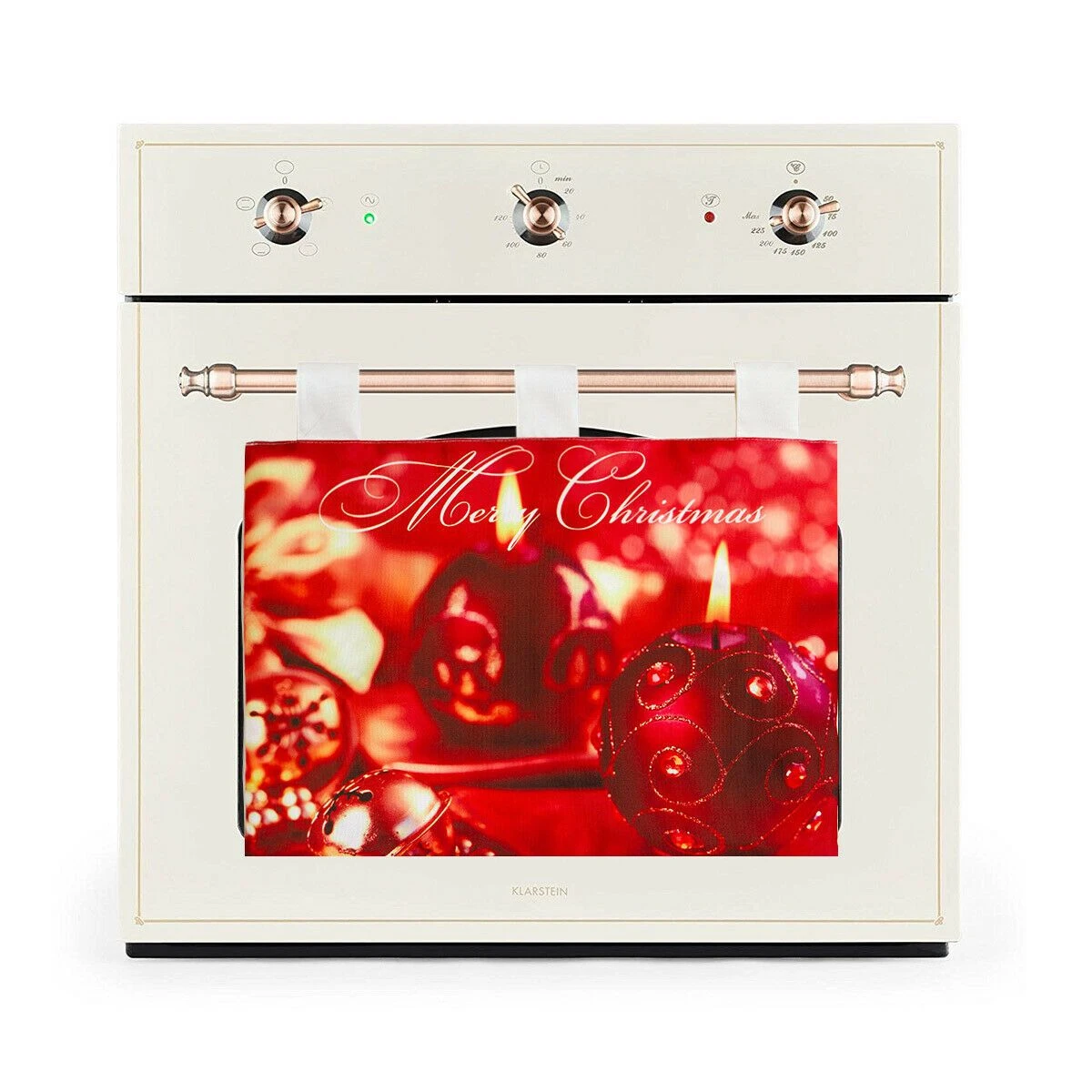 Tra i più evocativi simboli del Natale ci sono le candele, riprodotte sulla stampa di questo originale copriforno natalizio. Con le sue luci a led e la musica natalizia sarà il giusto accessorio per portare in cucina l’atmosfera natalizia.