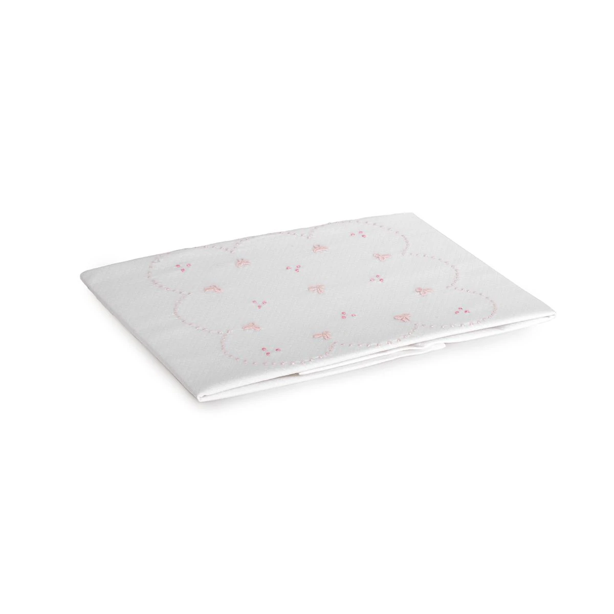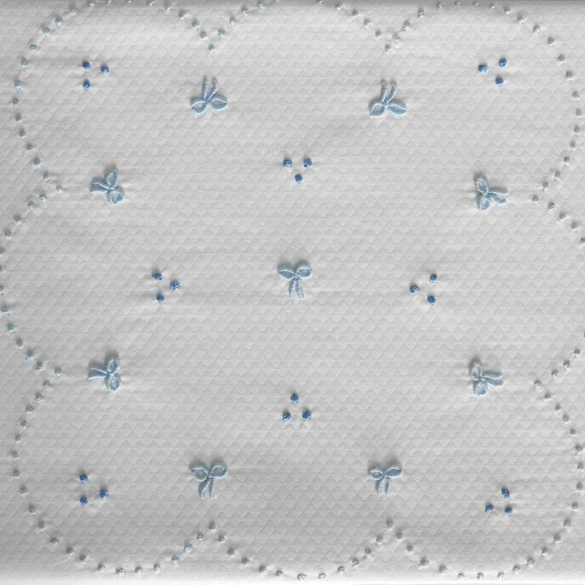 Tanti piccoli fiocchi sono i protagonisti di questo copriletto leggero in piquet di puro cotone, ideale per proteggere i piccoli di casa con un delicato abbraccio e permettere loro di dormire sonni tranquilli.