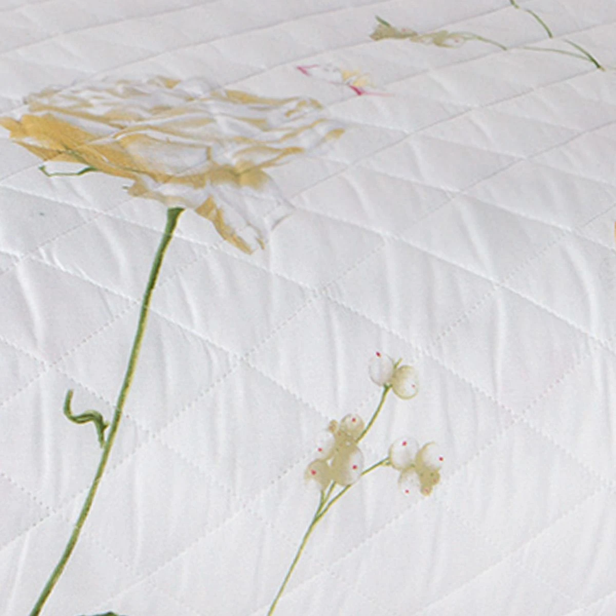 | Dettagli | La confezione contiene un trapuntino per letto matrimoniale due piazze Stampa con motivo floreale Retro in tinta unita Trapuntatura a rombi Angoli stondati Imbottitura in fibra anallergica 100 gr/mq Ideale per il periodo primaverile ed autunnale Colori solidi e resistenti ai lavaggi Custodito in una confezione in pvc con manico e zip di chiusura Made in Italy |