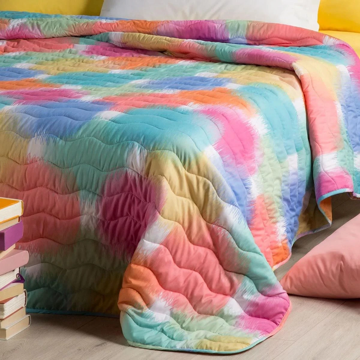 | Dettagli | La confezione contiene un trapuntino Motivo astratto sfumato Angoli stondati Trapuntatura a onde Imbottitura da 100 gr/mq Ideale per la primavera e l’autunno ECO COLOR coloranti ecologici certificati Imbottitura anallergica e altamente igienica Made in Italy |