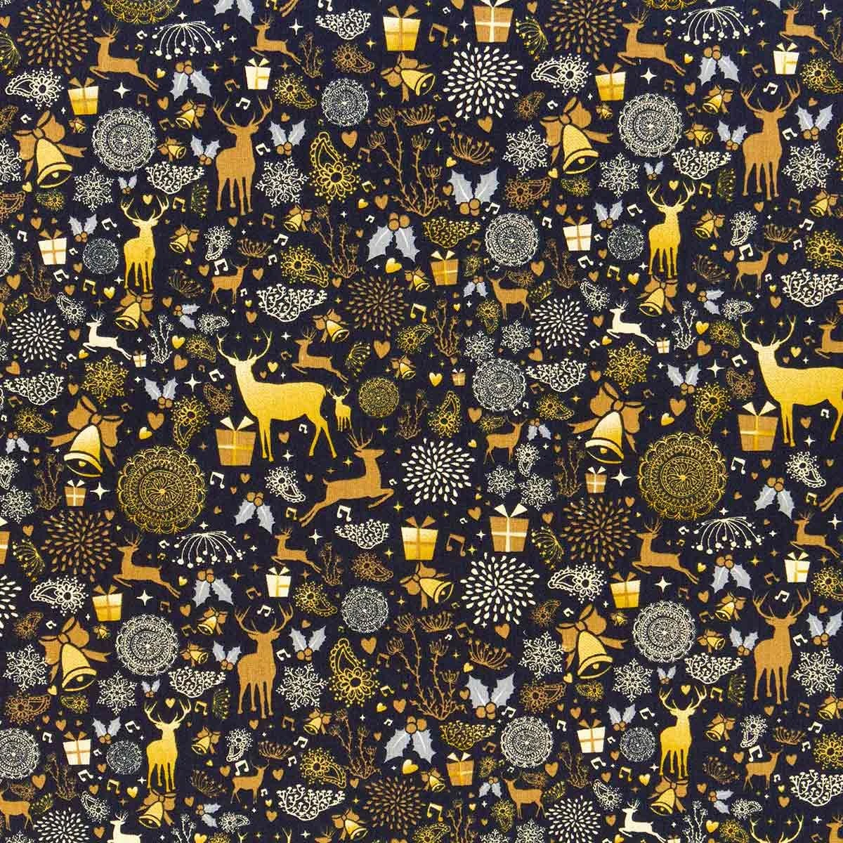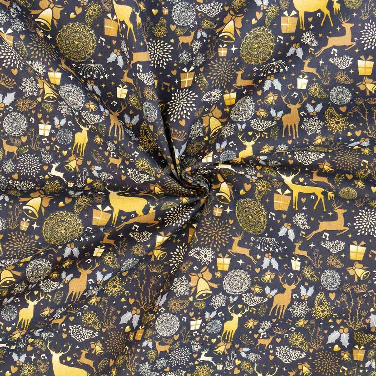 Elegante e raffinato, con questo cotone di colore blu notte con motivo natalizio potrai realizzare le miglior idee di accessori per Natale.