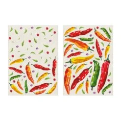 Set 2 Strofinacci Cucina Asciugapiatti Chili In Puro Cotone K135