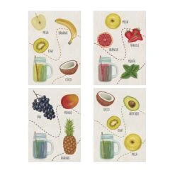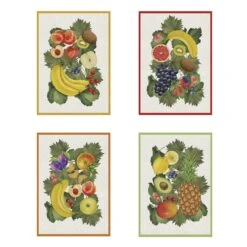 Set 4 Strofinacci Cucina Asciugapiatti Frutta In Puro Cotone K064