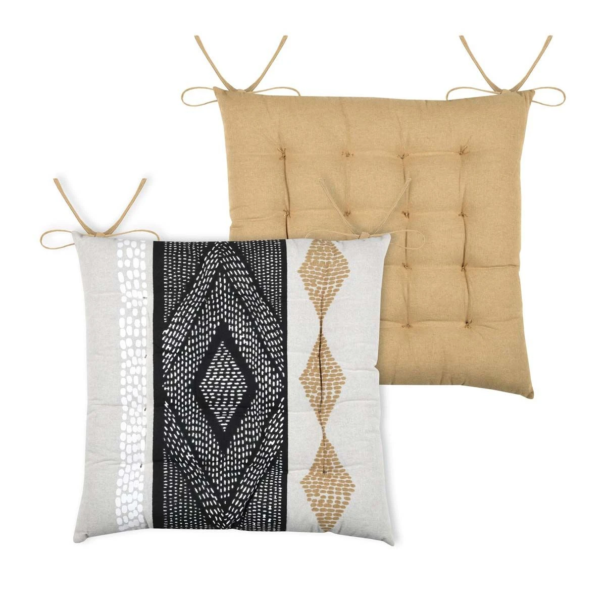 | Dettagli | La confezione contiene un cuscino coprisedia Forma quadrata Motivo etnico Trapuntatura a 16 punti Imbottitura e seduta confortevole Pratici laccetti che permettono una perfetta aderenza alla sedia Non sfoderabil |