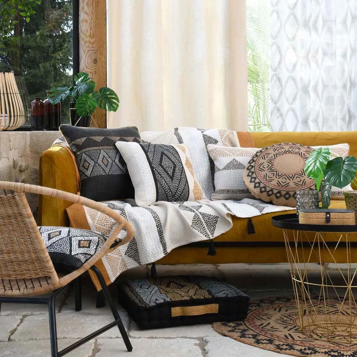 | Dettagli | La confezione contiene un cuscino da pavimento Forma quadrata Motivo etnico Bordo in tinta unita con manico in contrasto di colore Trapuntatura a 16 punti Imbottitura consistente e voluminosa Facile da spostare grazie al manico Non sfoderabile |