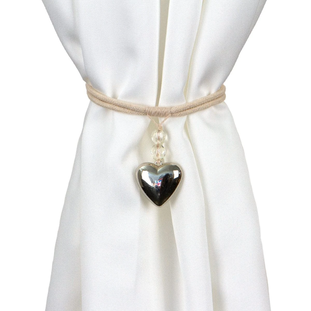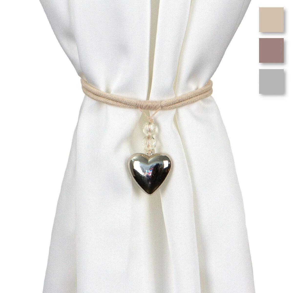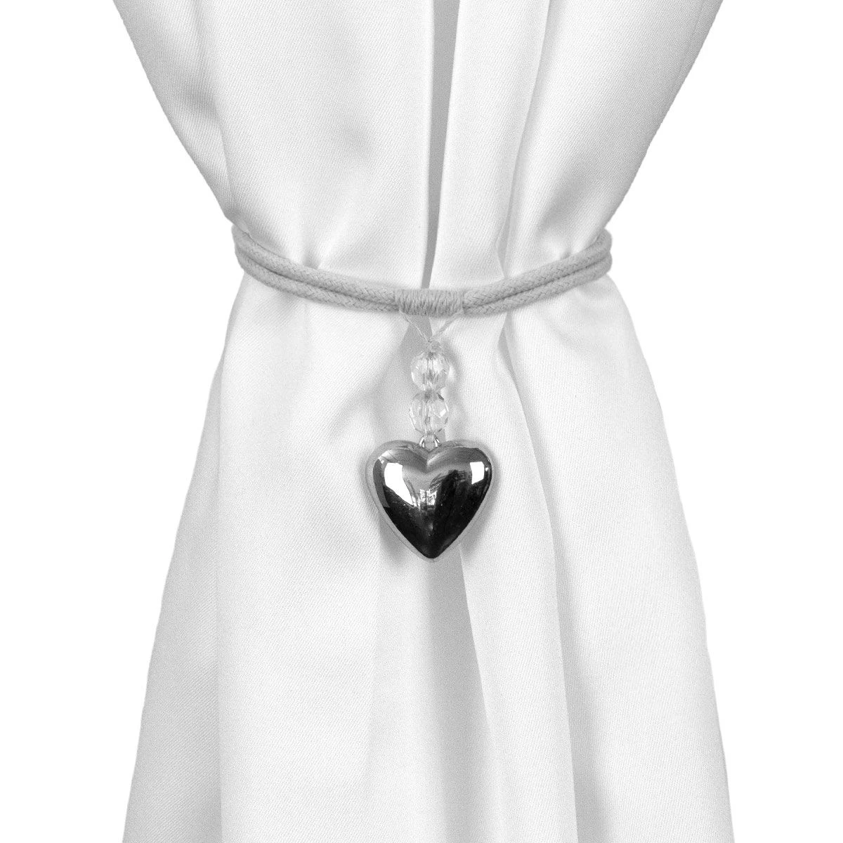 | Dettagli | La confezione contiene un fermatenda composto da: 1 nastro/laccio in corda intrecciata 1 decoro cuore in metallo con due simil cristalli Chiusura con asola Ideale per raccogliere le tende o creare drappeggi |