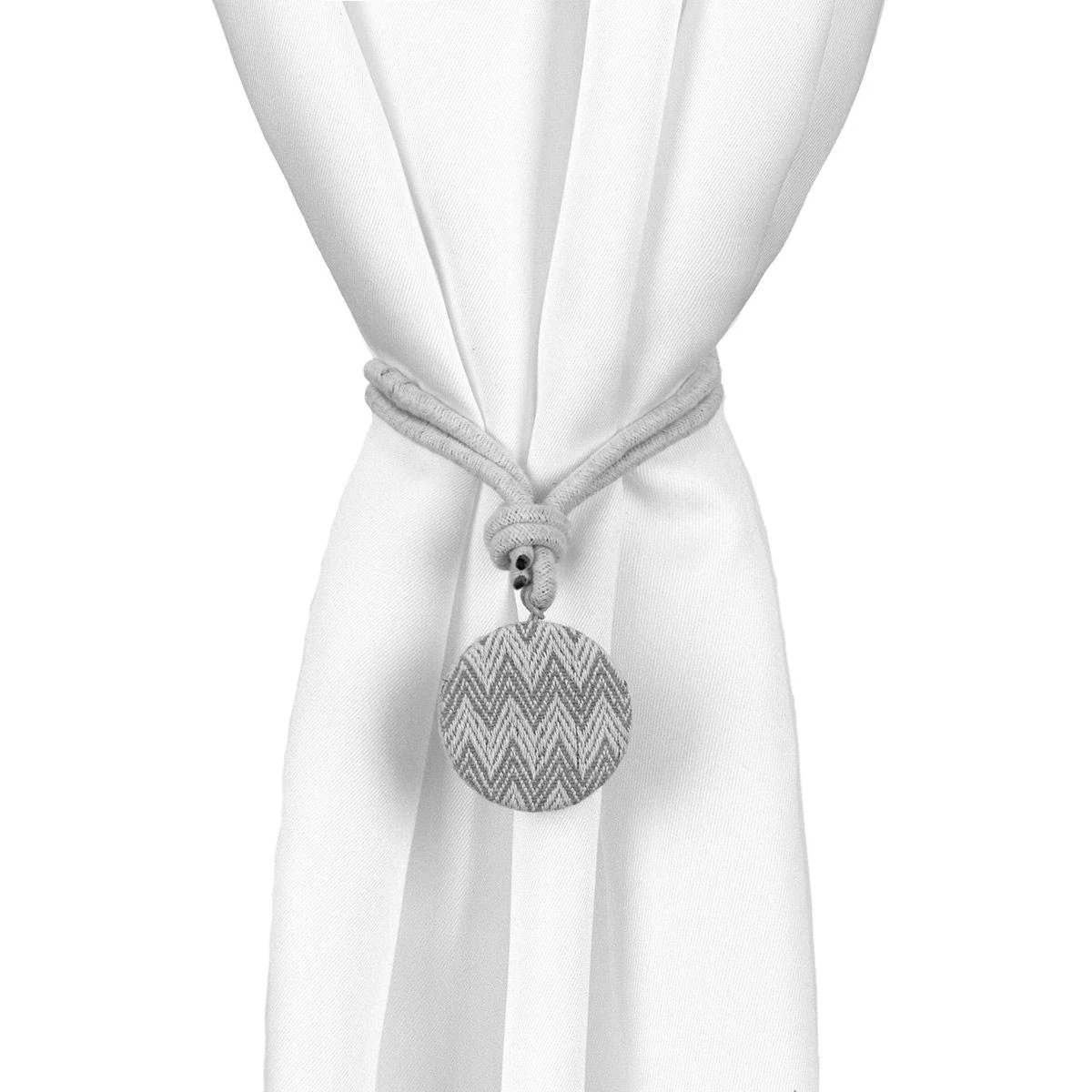 | Dettagli | La confezione contiene un fermatenda composto da: 1 nastro/laccio in corda intrecciata 1 decoro rotondo in metallo rivestito in tessuto con motivo a zig zag Chiusura con asola Ideale per raccogliere le tende o creare drappeggi |