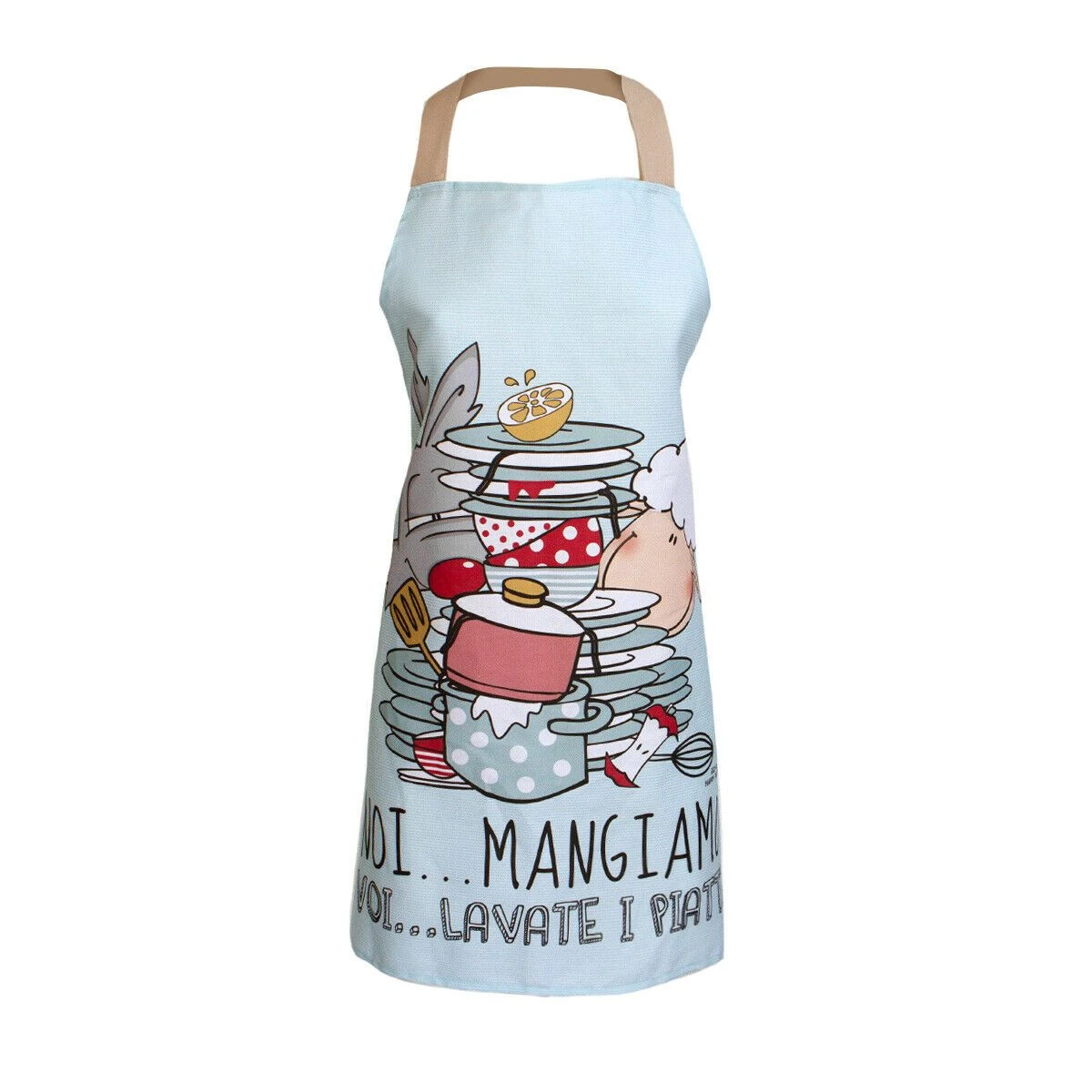 | Dettagli | La confezione contiene un grembiule da cucina Stampa della pecorella e del lupo di Happy People Frase stampata “Noi Mangiamo Voi Lavate i Piatti” Laccetti in tinta unita Creativo ed originale Puro cotone naturale Confezionato in una scatola stampata Made in Italy |