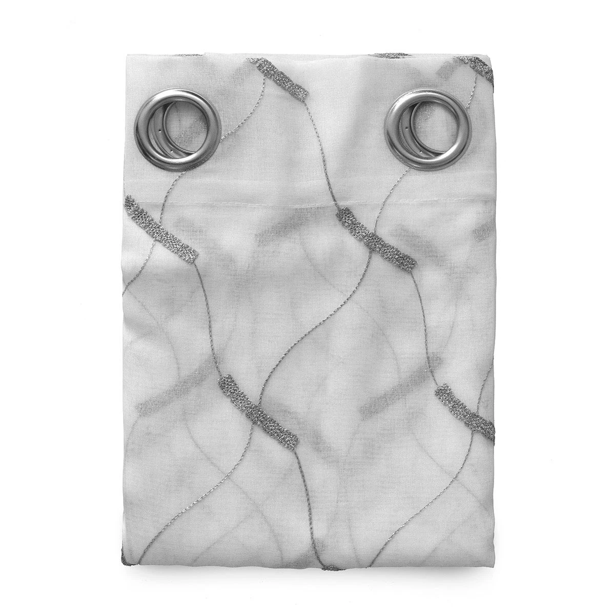 | Dettagli | La confezione contiene un pannello tenda Tenda confezionata con 8 borchie (anelli) di colore argento Tessuto semitrasparente con lavorazione jacquard Motivo astratto Pronta per essere montata |
