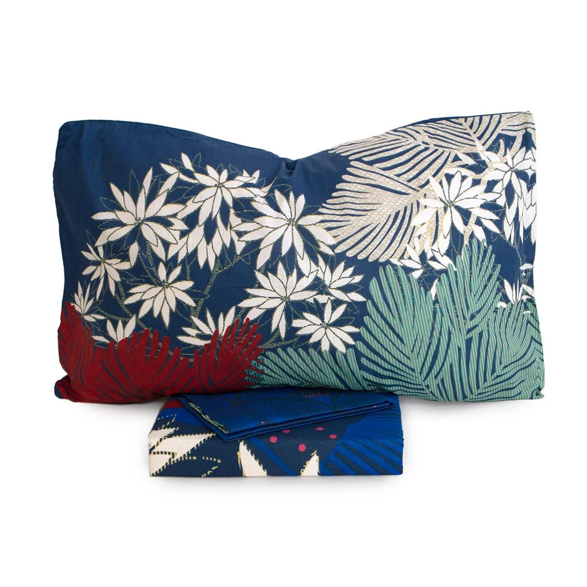 | Dettagli | La confezione contiene una parure copripiumino composta da: 1 sacco copripiumino 2 federe a sacchetto Sacco e federe stampate Motivo floreale tropicale Patella sagomata che permette di non rimboccare gli angoli Fibra naturale di puro cotone, 57 fili/cmq Certificato OEKO-TEX garantisce che i prodotti sono privi di sostanze nocive Lavare i colori separatamente |