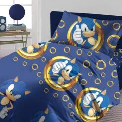 Il porcospino più amato da generazioni di piccoli e grandi videogiocatori, è il protagonista di questa parure copripiumino. Sonic the Hedgehog porta in camera da letto tutta la sua sfrontatezza e simpatia per regalare ai più piccoli un riposo fatto di sogni divertentissimi.