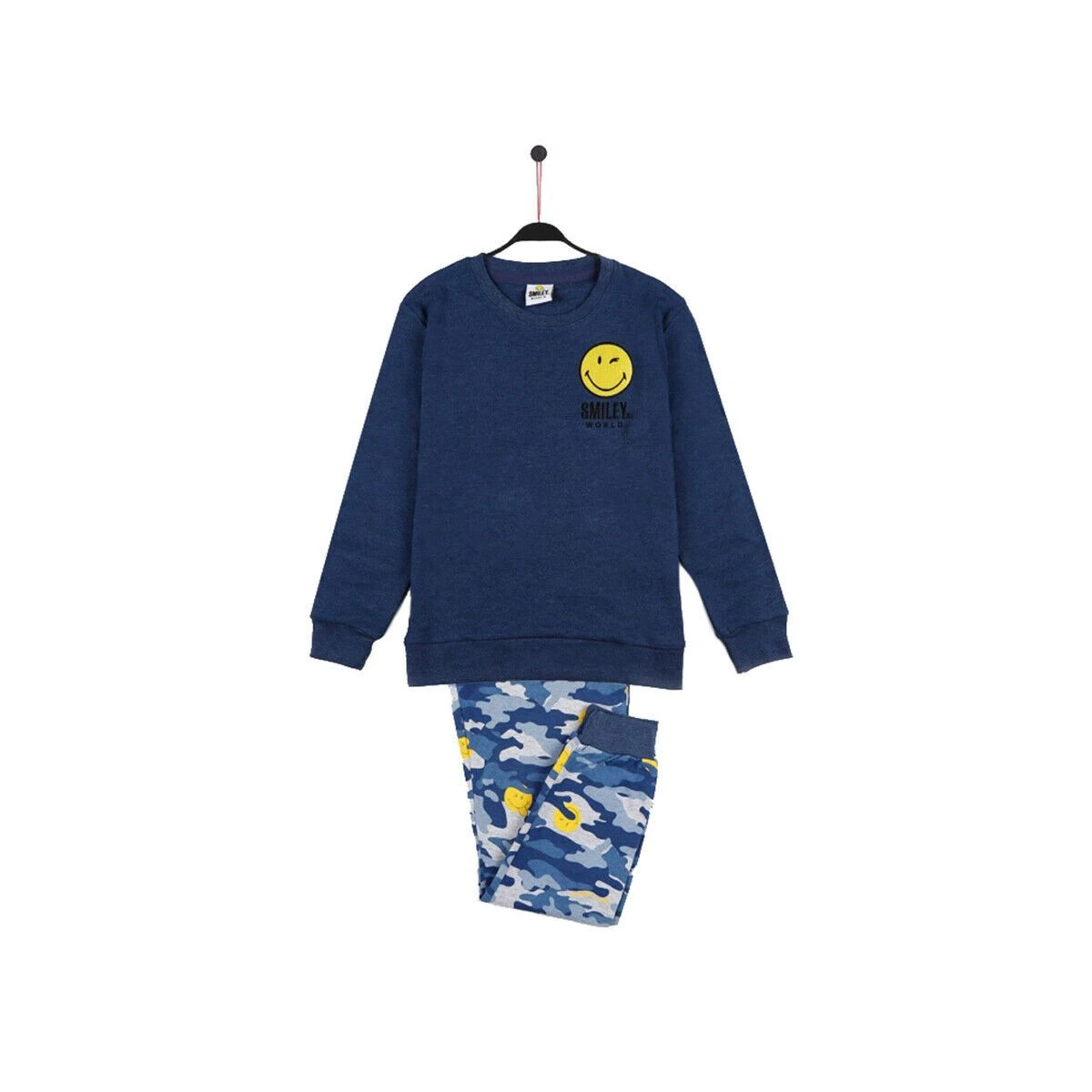| Dettagli | La confezione contiene un pigiama bambino/ragazzo che comprende: 1 maglia modello felpa, girocollo,con stampa di uno smiley sul petto e comodi polsini 1 pantalone con motivo marmorizzato e comodi polsini in tinta unita Caldo cotone, ideale per l’inverno Confezionato in una scatola stampata Ottima idea regalo |