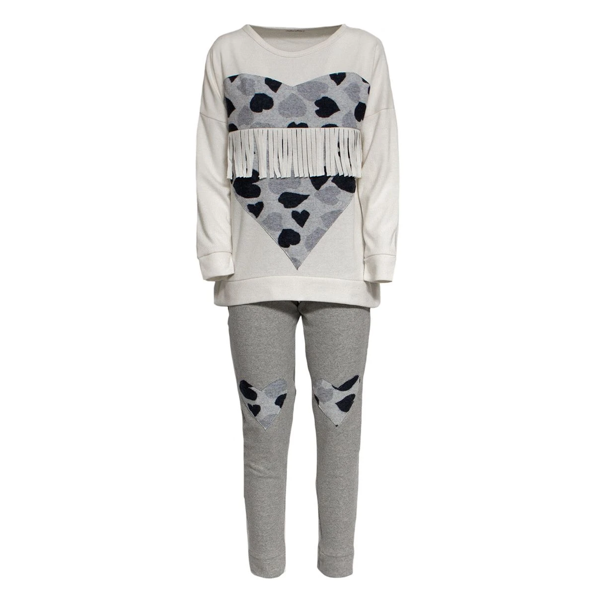 | Dettagli | La confezione contiene un pigiama da donna composto da: 1 maxi maglia a manica lunga girocollo , comodi polsini elasticizzati, inserto centrale con frange 1 pantalone lungo tinta unita, aderente con toppe a cuori e polsini elasticizzati Punto Milano a maglia rasata, particolarmente compatta e calda Morbido e soffice Ideale per il periodo invernale Confezionato in una scatola stampata |