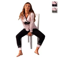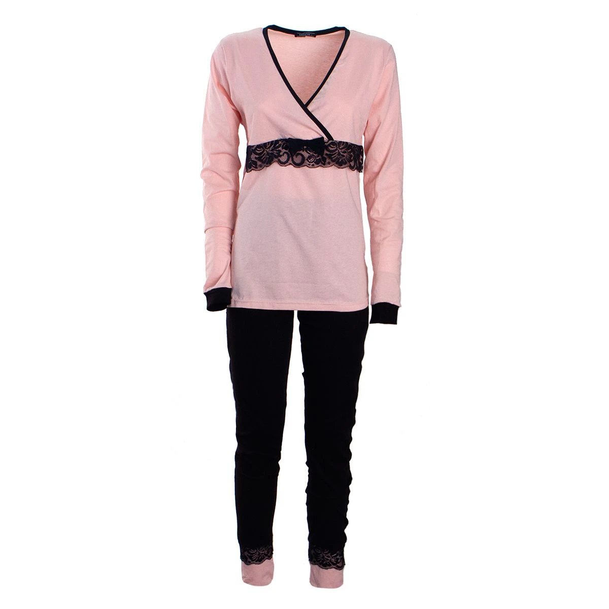 | Dettagli | La confezione contiene un pigiama da donna composto da: 1 maglia a manica lunga scollo incrociato con applicazioni in pizzo 1 pantalone lungo tinta unita con elastico in vita e polsini Jersey di puro cotone, fresco e leggero Adatto per la primavera, l’estate e l’autunno Confezionato in una scatola stampata |