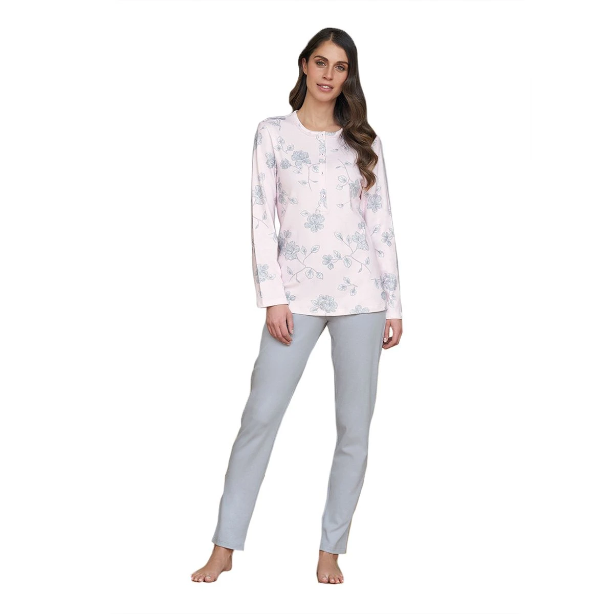| Dettagli | La confezione contiene un pigiama da donna in caldo cotone composto da: 1 maglia con scollo serafino e bottoncini e stampa floreale 1 pantalone lungo tinta unita con elastico in vita Morbido e soffice caldo cotone Ideale per il periodo invernale Modello pratico e confortevole per vestire tutte le taglie, anche quelle forti Confezionata in una scatola stampata |