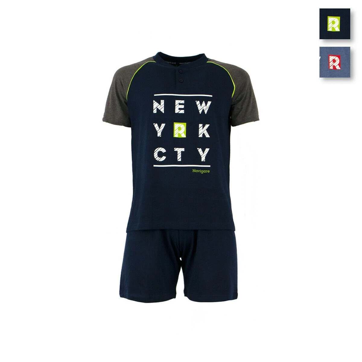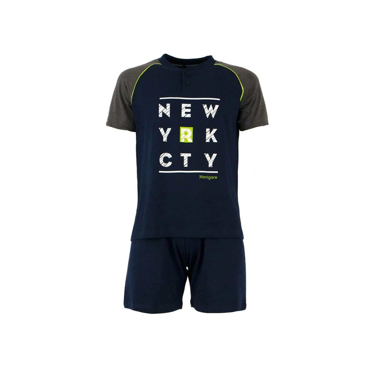 | Dettagli | La confezione contiene un pigiama da ragazzo composto da: Una maglia a mezza manica scollo serafino con bottoncini Stampa centrale Un pantalone corto tinta unita, con elastico in vita e taschino posteriore Jersey di cotone Capo estivo leggero e comodo Confezionato in una scatola stampata |