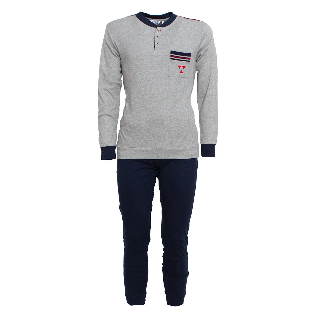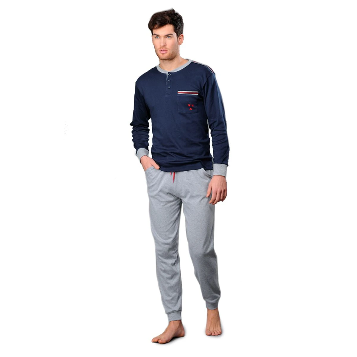 Il pigiama da uomo in caldo cotone Kissimo, ha un tocco sportivo e casual. Comodo per stare semplicemente in casa oppure andare a letto.