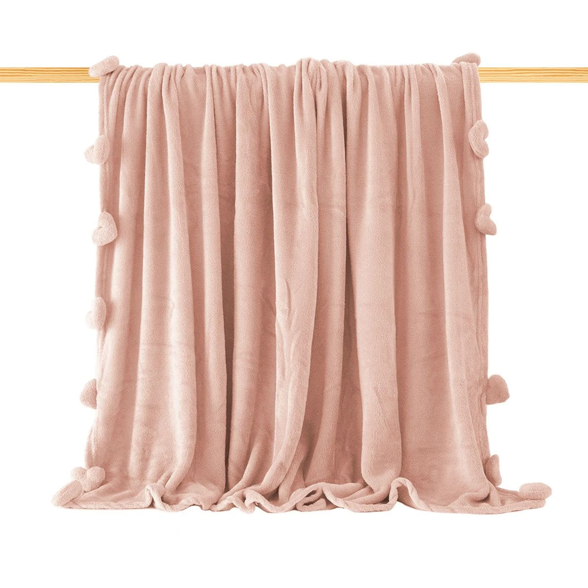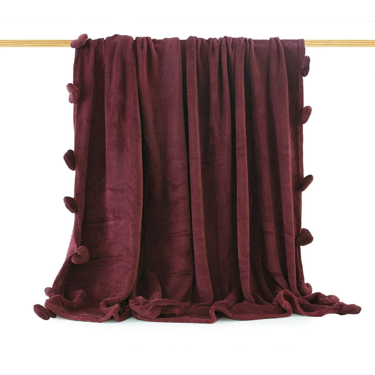 | Dettagli | La confezione contiene un plaid in pile Misura matrimoniale Articolo in tinta unita Particolarmente caldo, morbido ed avvolgente Su due lati pendono dei simpatici pon pon a forma di cuoricini Può essere utilizzato sia come coperta per il letto matrimoniale sia come plaid per stare caldi mentre si è sul divano a guardare la tv |