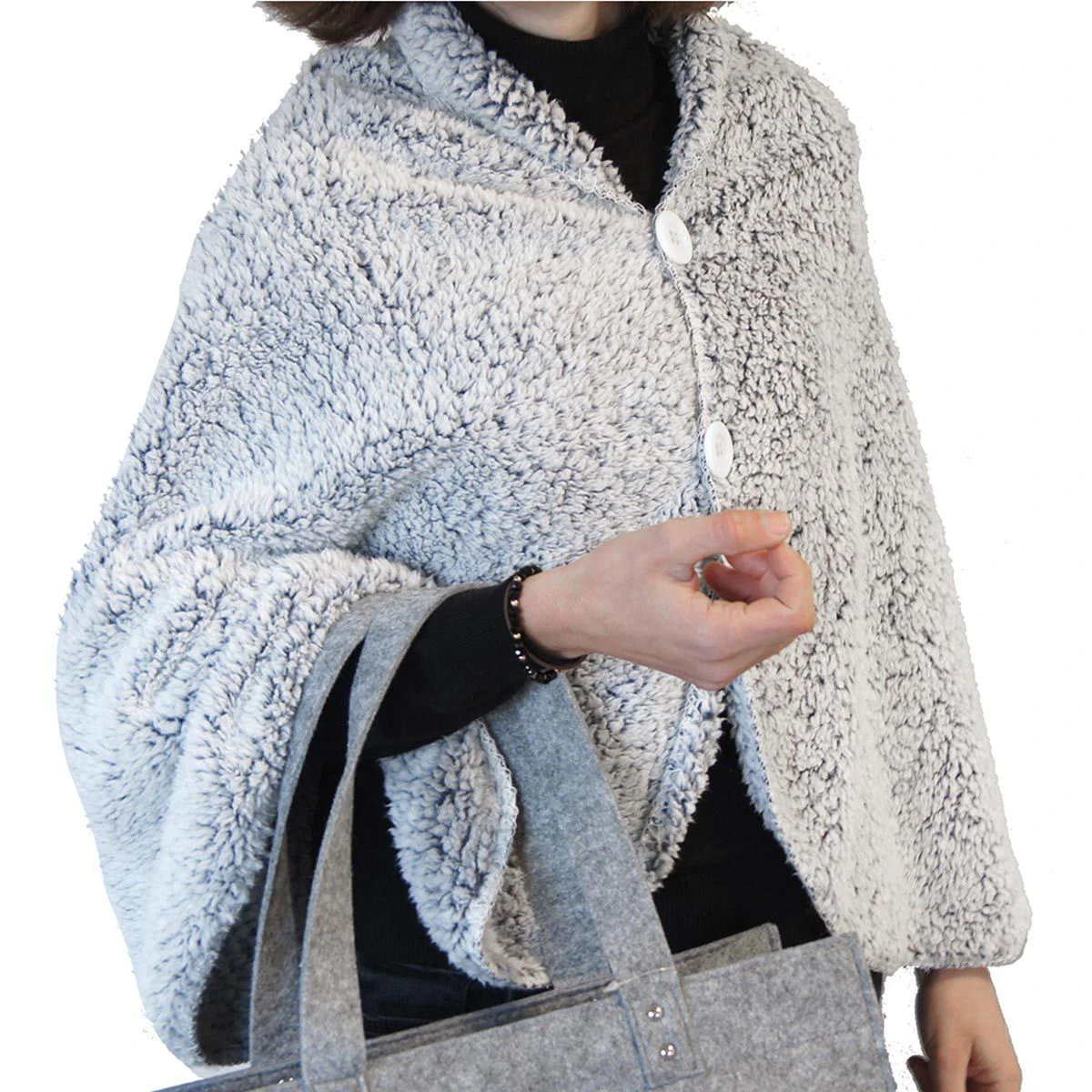 | Dettagli | La confezione contiene un poncho in pile sherpa Dotato di bottoni sulla parte anteriore Sherpa effetto cachemire super soft Fibra anallergica e antibatterica Grammatura: 280 gr/mq Soffice e caldo, ideale per l’inverno Disegnato e progettato in Italia |