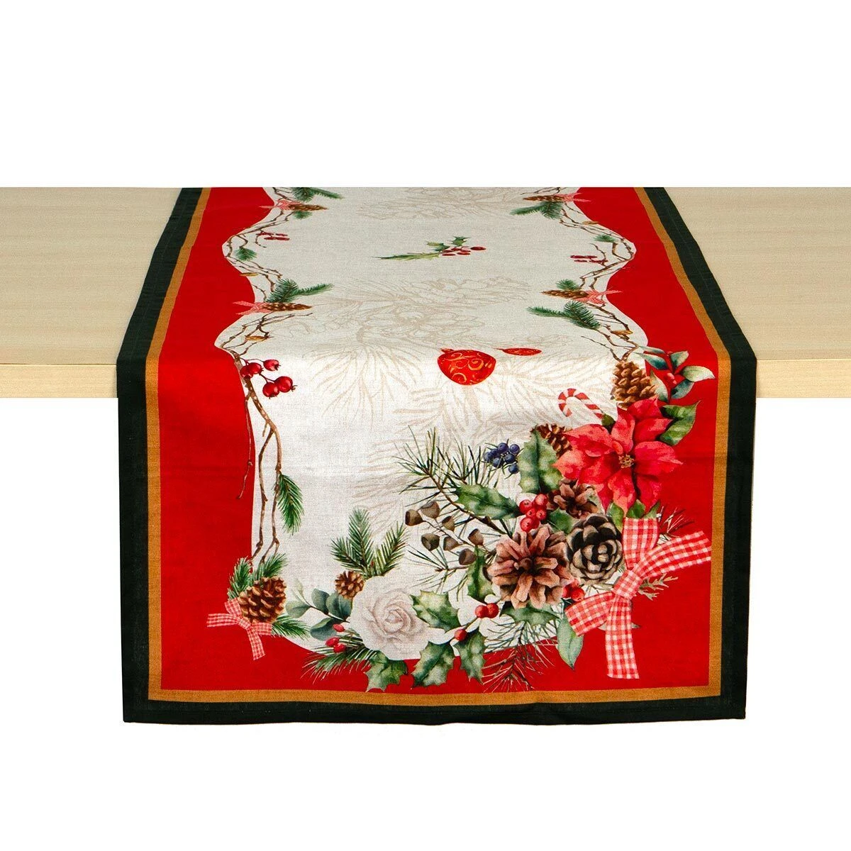 Il runner Felicia è realizzato in puro cotone e si adatta perfettamente a decorazione natalizia con la sua stampa in alta definizione. Arreda la tua tavola con questa meraviglia.