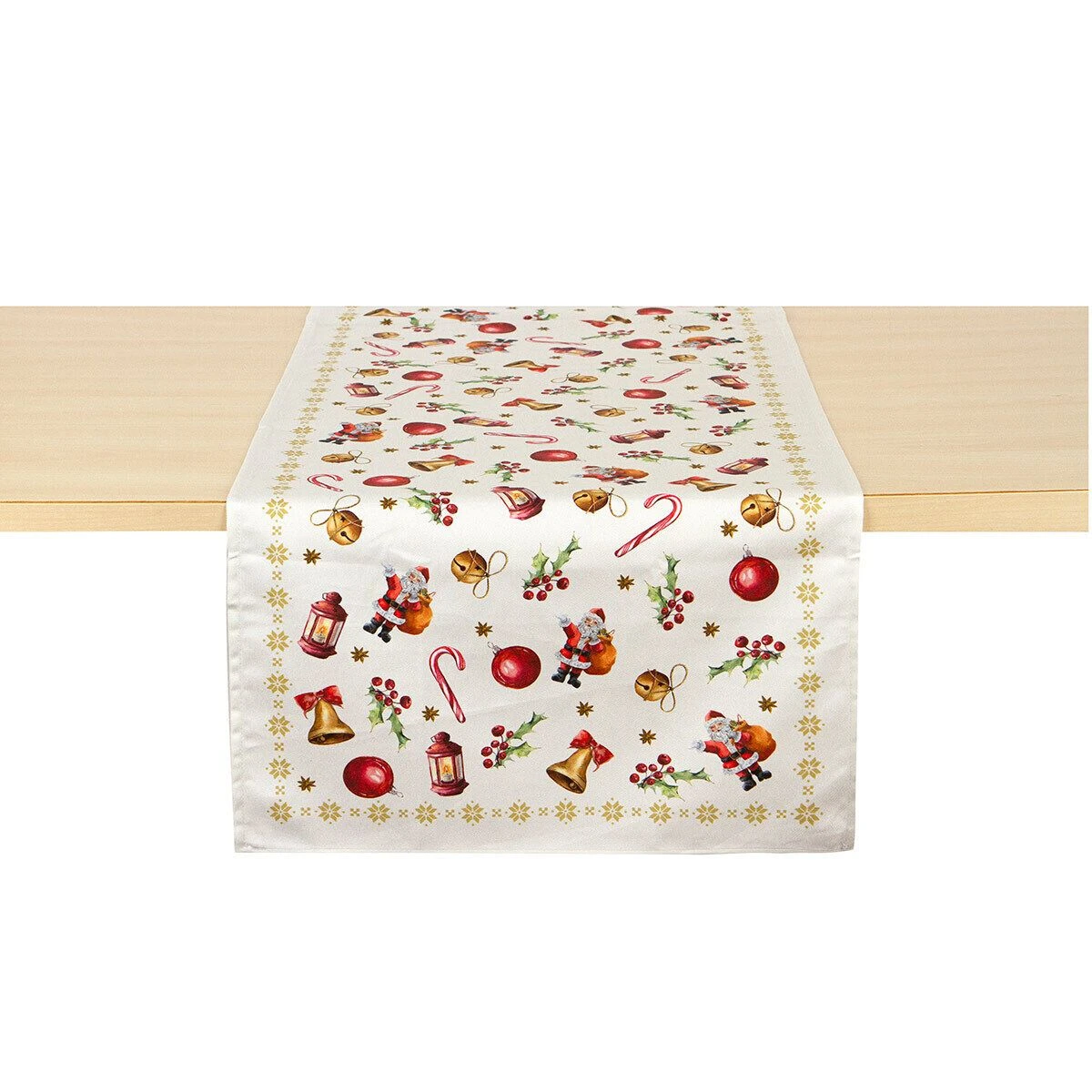 | Dettagli | La confezione contiene un runner centrotavola Motivo natalizio Stampa digitale ad alta definizione Retro in tinta unita Puro cotone naturale Adatto come decorazione di Natale Made in Italy |