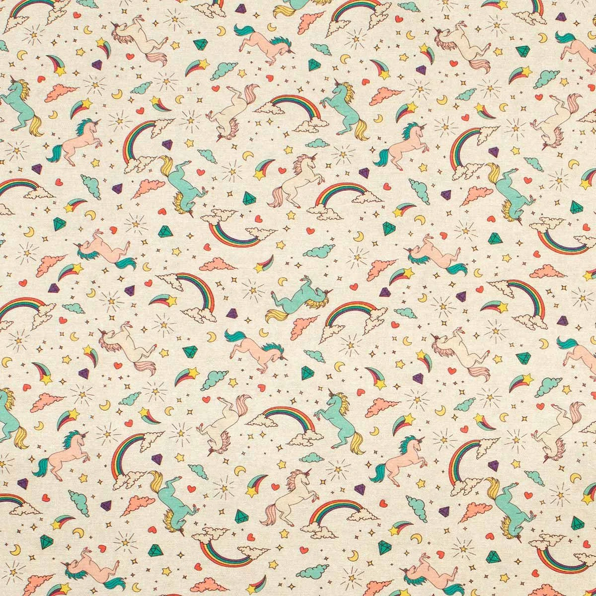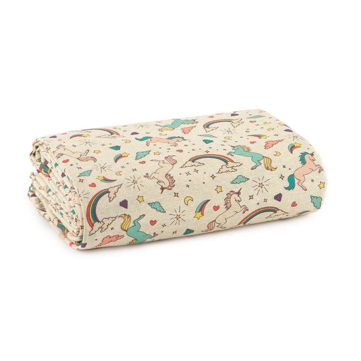 Colorati e dolci unicorni sono i protagonisti dello scampolo Rainbow, ideale per far volare la tua fantasia creando cuscini, teli, copriletto e tanto altro ancora. Un tessuto perfetto per chi desidera adornare casa con originalità.