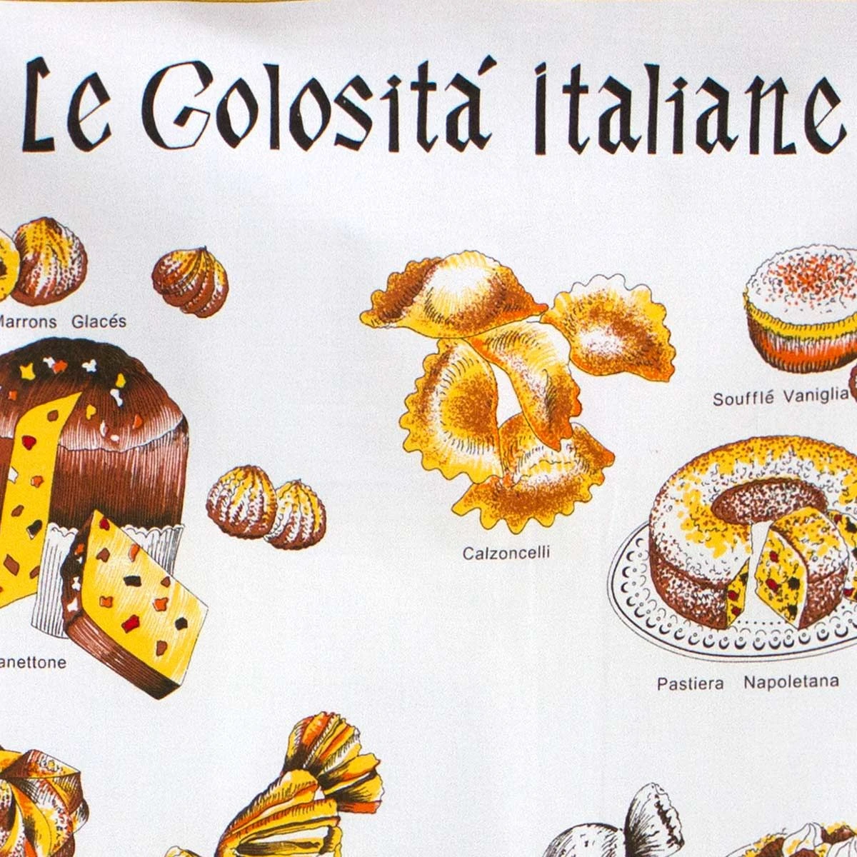 I dolci sono sicuramente tra gli alimenti più amati in cucina, al cioccolato, alla frutta, al pistacchio o semplicemente classico ogni luogo ha la sua specialità. Questo strofinaccio raffigura vari dolci classici italiani.