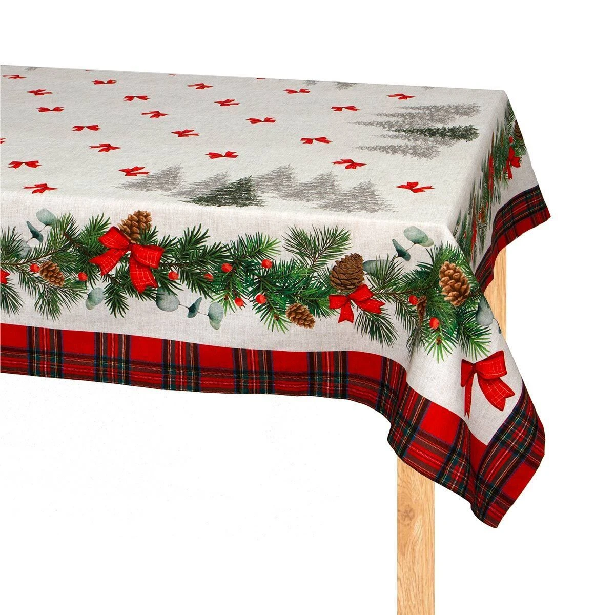 | Dettagli | La confezione contiene una tovaglia da tavola Stampa digitale ad alta definizione Motivo natalizio con fiocchi e decorazioni Motivo tartan applicato sui bordi Puro cotone naturale Restistente ai ripetuti lavaggi Disegnata e progettata in Italia |
