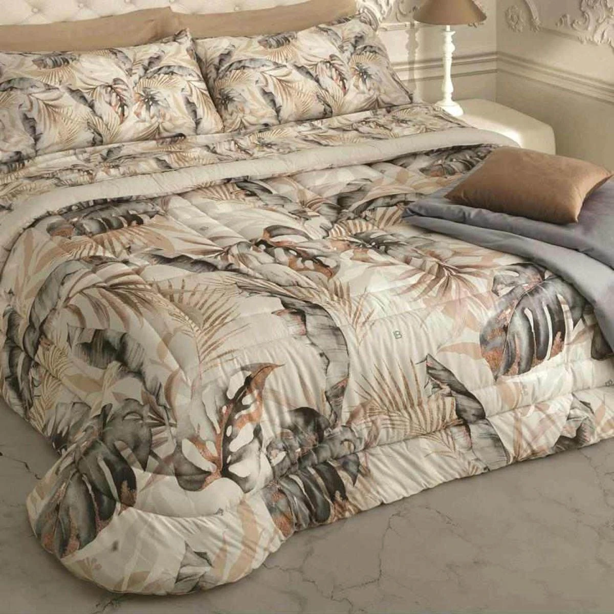 Angela è la trapunta firmata Laura Biagiotti studiata per creare un’atmosfera calda ed accogliente in camera da letto. La stampa digitale ad alta definizione caratterizza le tonalità intense di questo capo, caldo e soffice ed ideale per l’inverno.