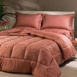 La trapunta Terracotta della collezione Geo, a firma di Alviero Martini 1a Classe, rievoca nella sua colorazione lo splendore delle lavorazioni etrusche ed elleniche che hanno incantato i viaggiatori del loro tempo e gli storici a seguire. L’elegante stampa digitale accompagna in qualità la raffinatezza del tessuto in raso di puro cotone. Molto calda e soffice, la trapunta è perfetta per le temperature invernali.