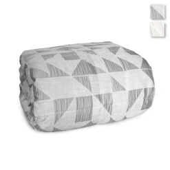 La moderna trapunta Desmond di Minardi, con il suo motivo geometrico, dona dinamicità alla camera da letto. Grazie alla sua imbottitura da 350 gr/mq assicura calore durante le fredde notti d’inverno.