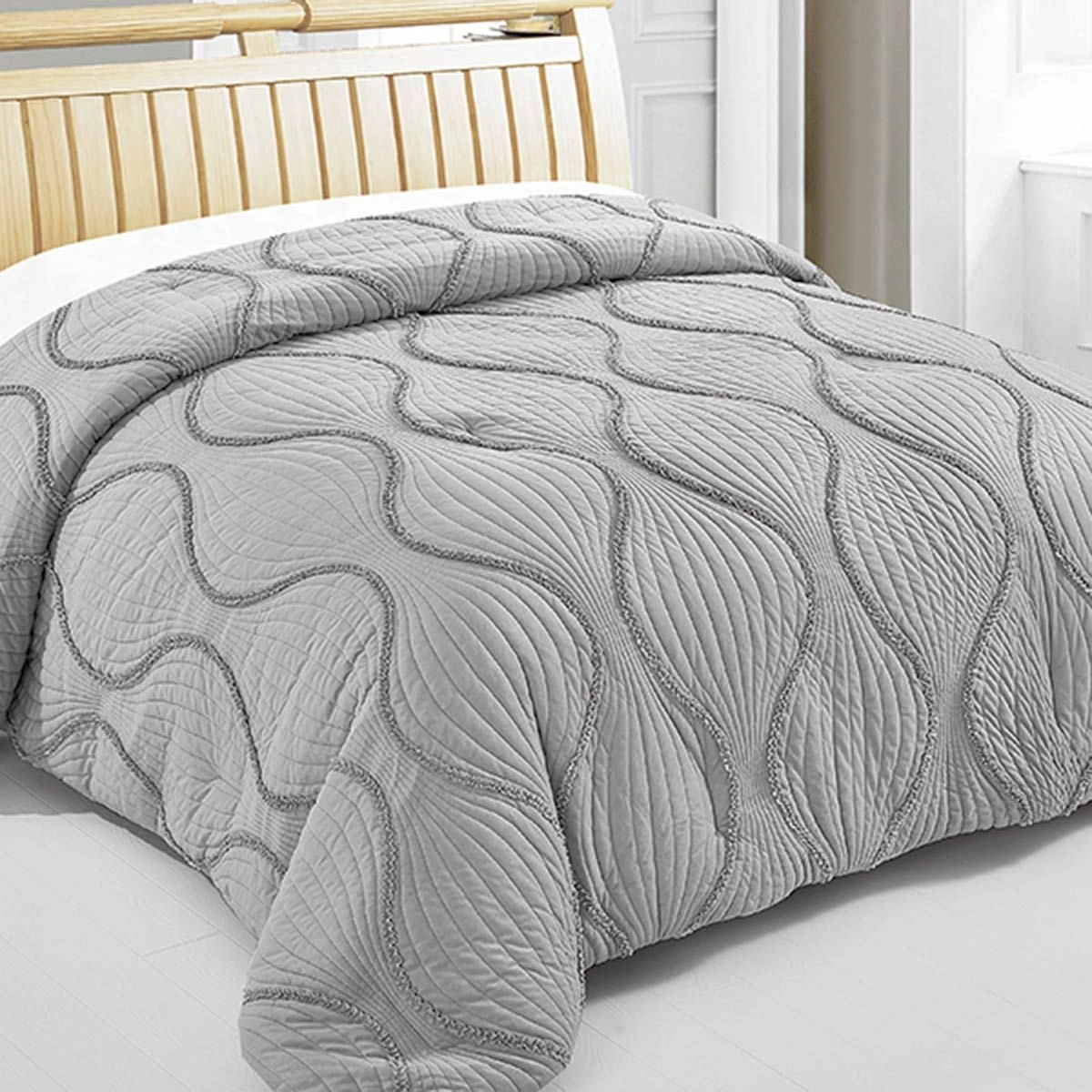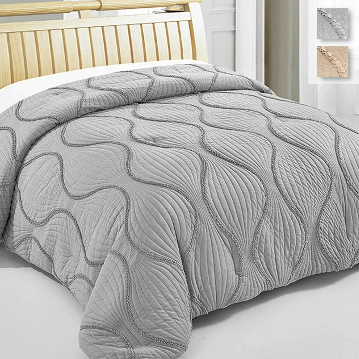 | Dettagli | La confezione contiene una trapunta per letto matrimoniale due piazze Morbido velluto con rouche arricciate Fondo tinta unita con particolari cuciture ad onde Caldissima, elegante e morbida Imbottitura da 350 gr/mq Ideale per il freddo inverno Custodita in una confezione in pvc con manico e cerniera di chiusura |