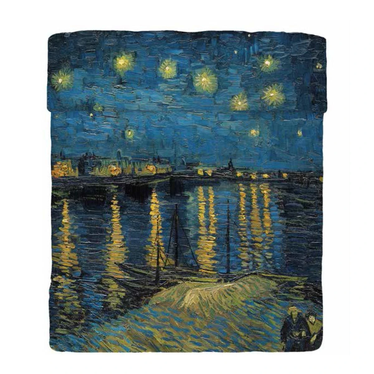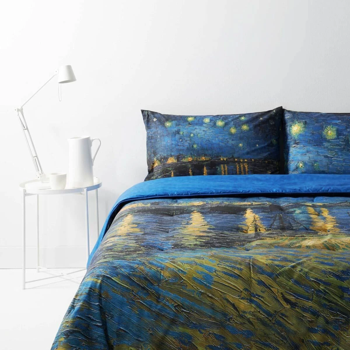 La trapunta invernale Notte Stellata di Bassetti sa essere calda come le emozioni e le atmosfere delle opere di Van Gogh. Realizzata in puro cotone, con imbottitura in poliestere anallergica, grazie alla stampa digitale in alta definizione riproduce fedelmente le intenzioni dell’artista nella sua opera “Notte Stellata sul Rodano”.