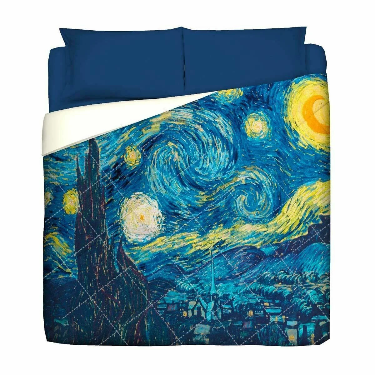 | Dettagli | La confezione contiene un copriletto trapuntato per letto matrimoniale due piazze Stampa digitale ad alta definizione dell’opera “Notte Stellata” Trapuntatura a rombi Angoli stondati Imbottitura in fibra anallergica 100 gr/mq Colori solidi e resistenti ai lavaggi Ideale per il periodo primaverile ed autunnale Custodito in una confezione in pvc con manico e zip di chiusura Made in Italy |
